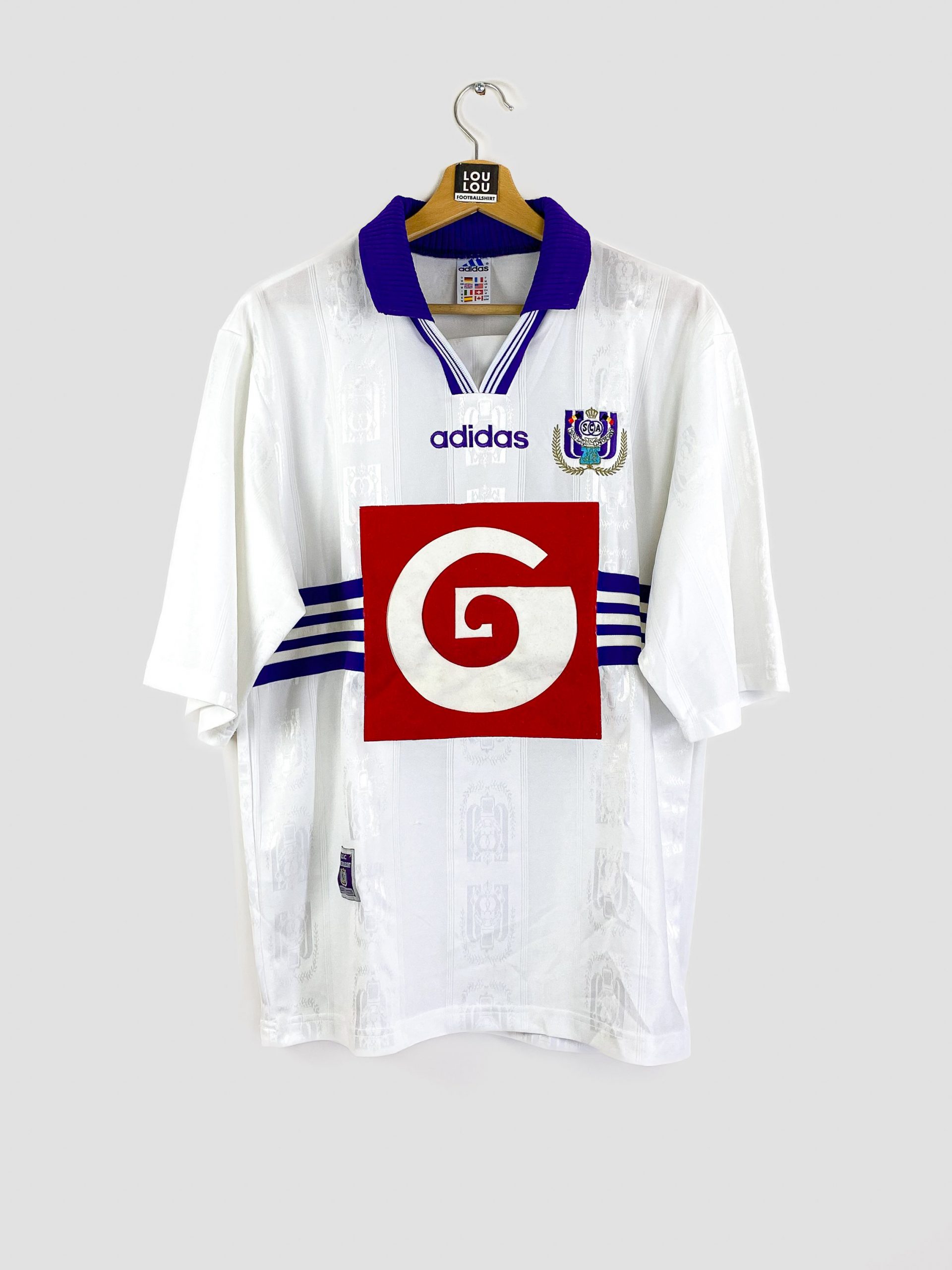 Nous vous présentons ce magnifique maillot vintage du club belge d’Anderlecht saison 1997-1998 en taille M.