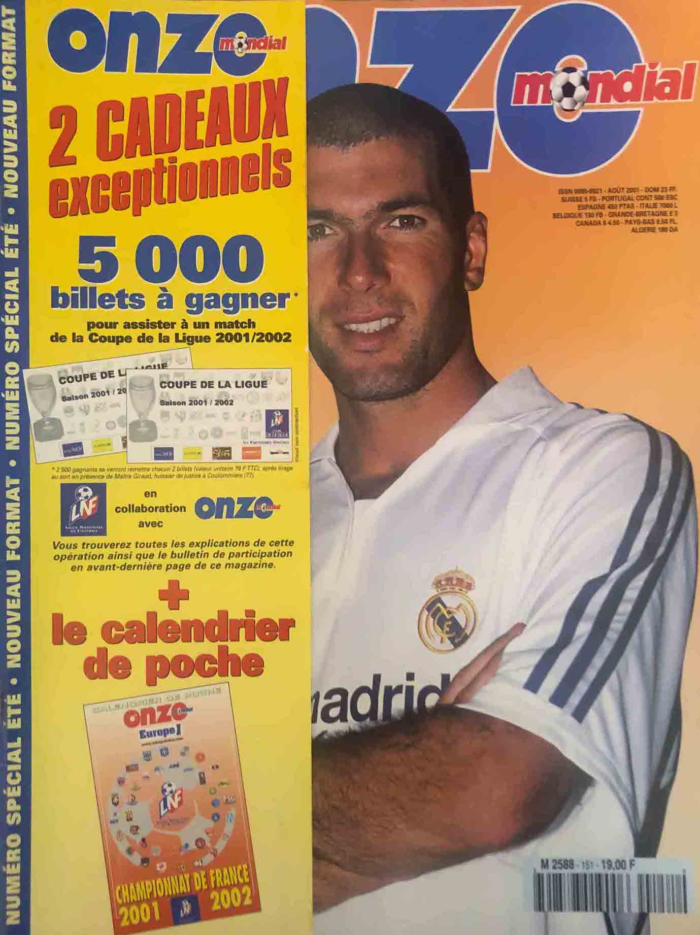 Attention pépite !!! Replongez dans les vieux magazine et la nostalgie de votre enfance, Louloufootballshirt vous présente ce Onze Mondial Vintage du mois d’août 2001. Le magazine est en très bon état avec ses 8 fiches dont celles de Carew et Saha et son poster de Zidane au Réal Madrid et Pauleta à Bordeaux.
