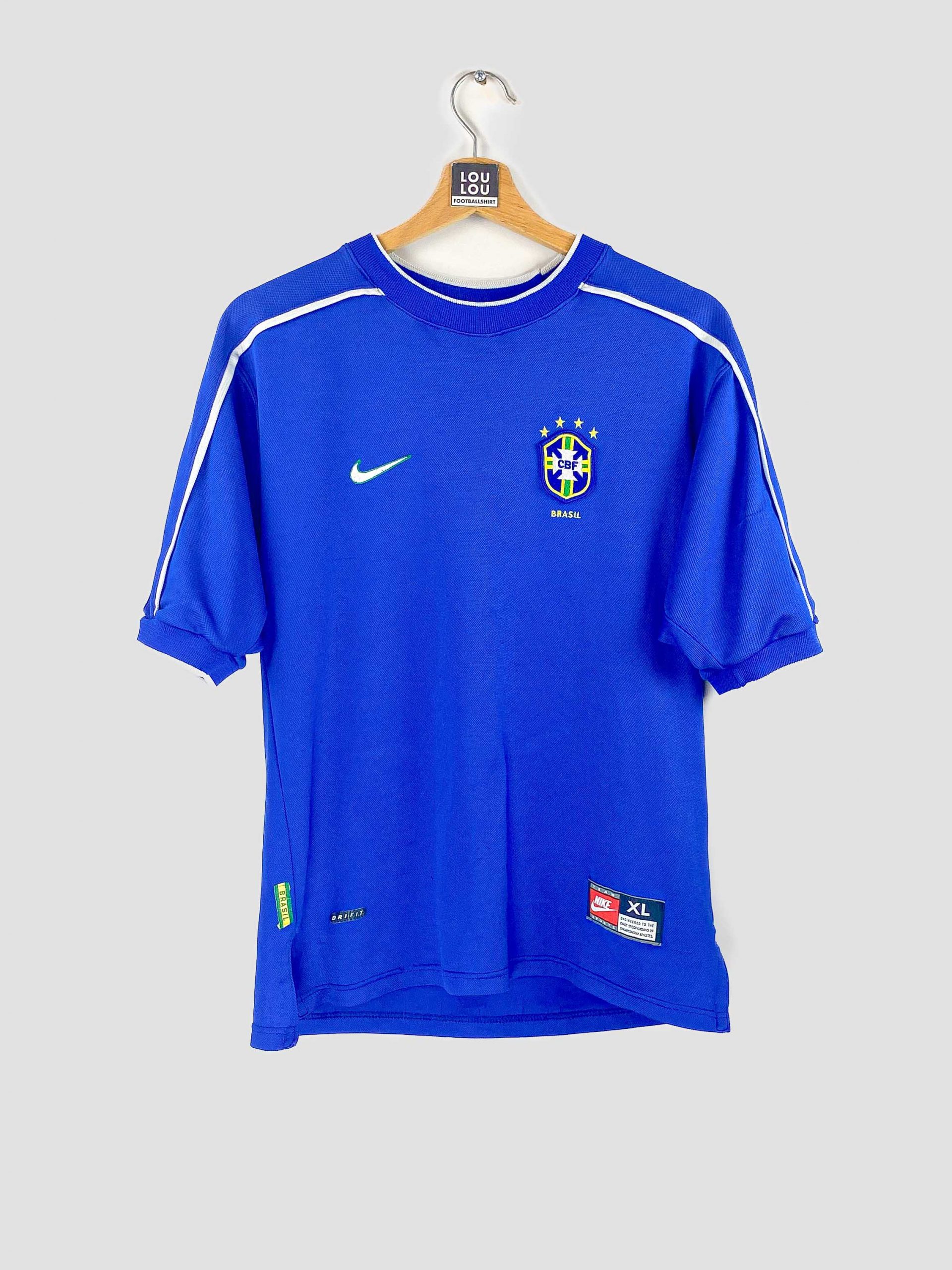 Ce maillot bleu est la version extérieure que porte le brésil lors du mondial 1998 en France. C’est la 16 ème participation à une coupe du monde pour le brésil. C’est l’unique nation à avoir participé à toutes les éditions de coupes du monde.