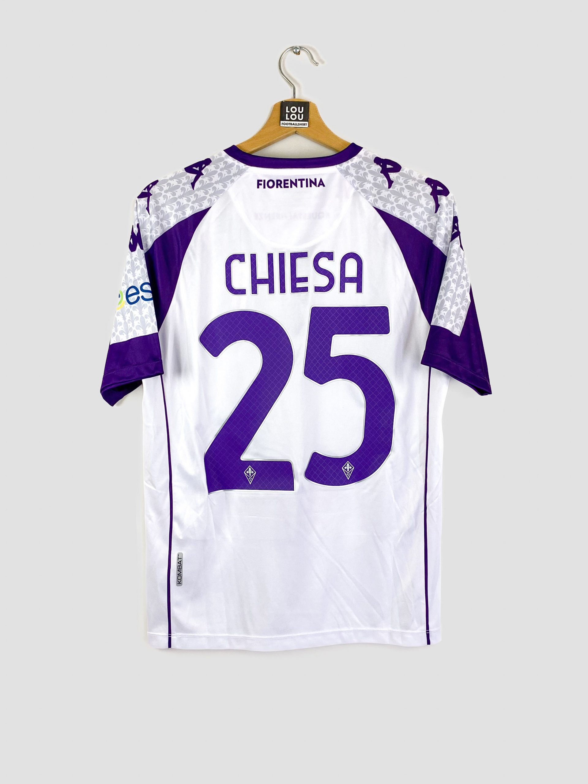 Nous vous présentons ce maillot dextérieur de la Fiorentina saison 2020-2021. Le maillot est floqué de la pépite Italiene, fils du célèbre Enrico Chiesa, Federico Chiesa.