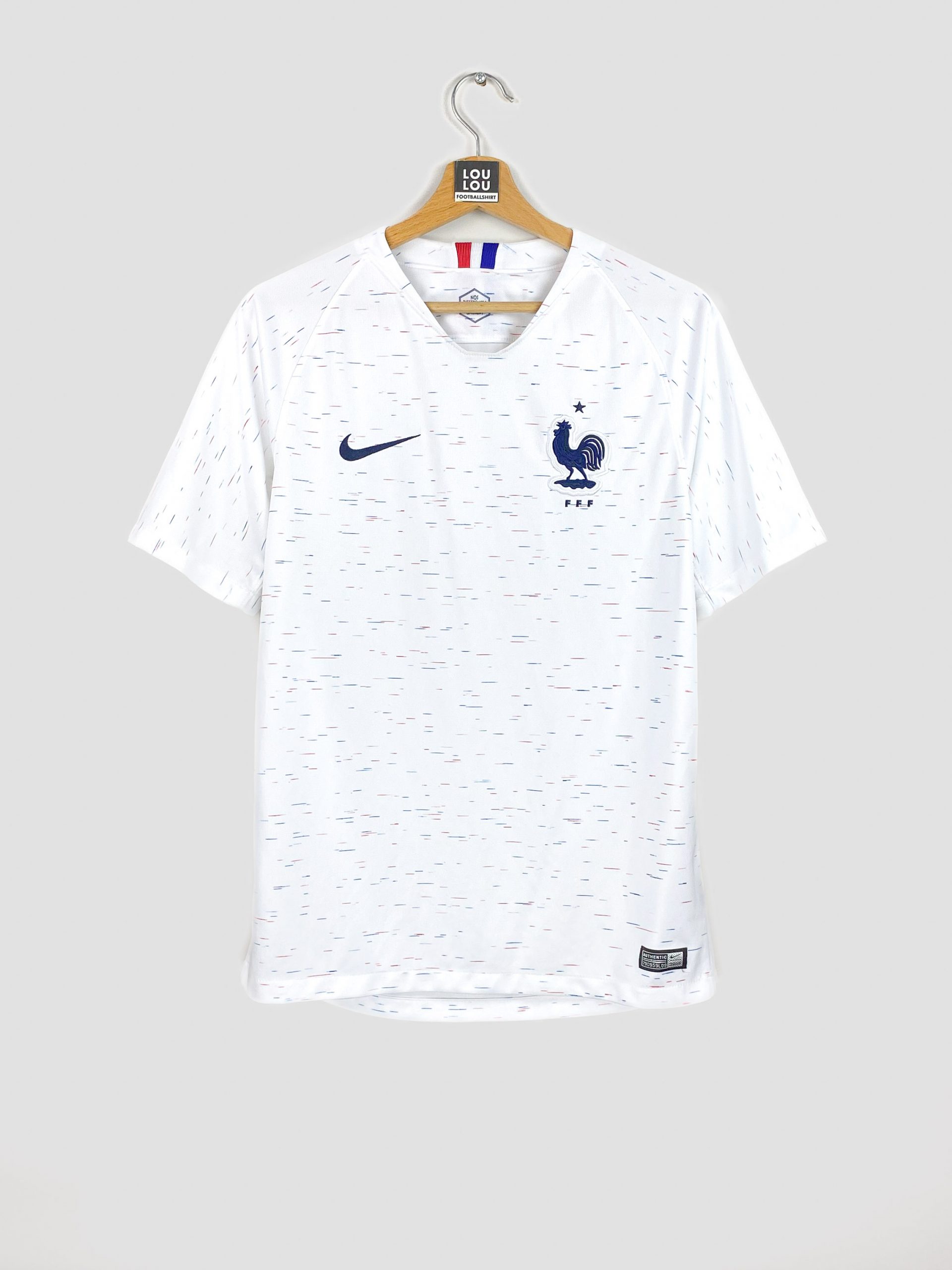 Louloufootballshirt vous présente ce maillot de l’Equipe de France porté lors de la coupe du monde 2018 en Russie. Lors de la Coupe du Monde 2018, Nike a fabriqué le maillot de l’équipe de France qui se compose de deux teintes de bleu pour la tenue à domicile, avec une nuance plus claire sur les manches que sur le reste de la tenue. Pour le maillot extérieur, la couleur blanche est assortie d’un effet moucheté.
