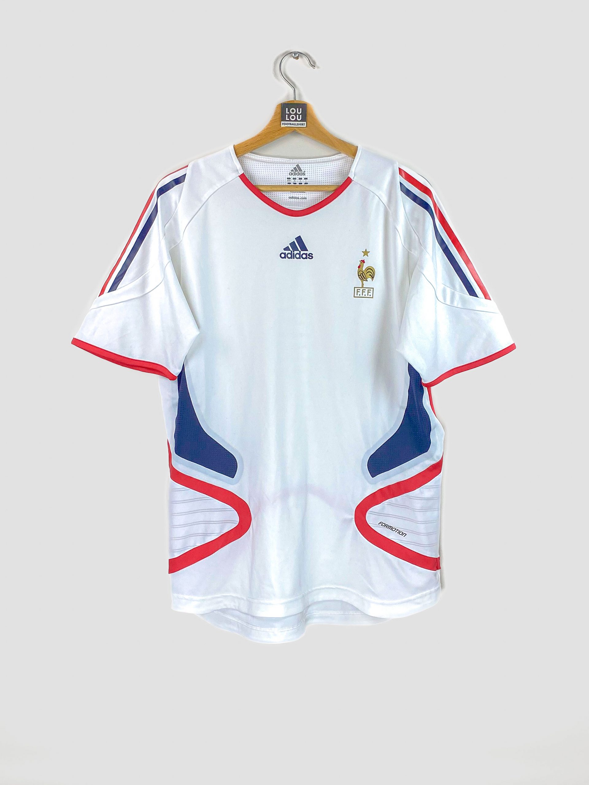 Louloufootballshirt vous présente ce magnifique maillot d’entrainement porté par l’équipe de France lors de la coupe du monde 2006 en Allemagne. Il s’agit d’un maillot version extérieur en Player Issue (technologie Formotion d’Adidas).