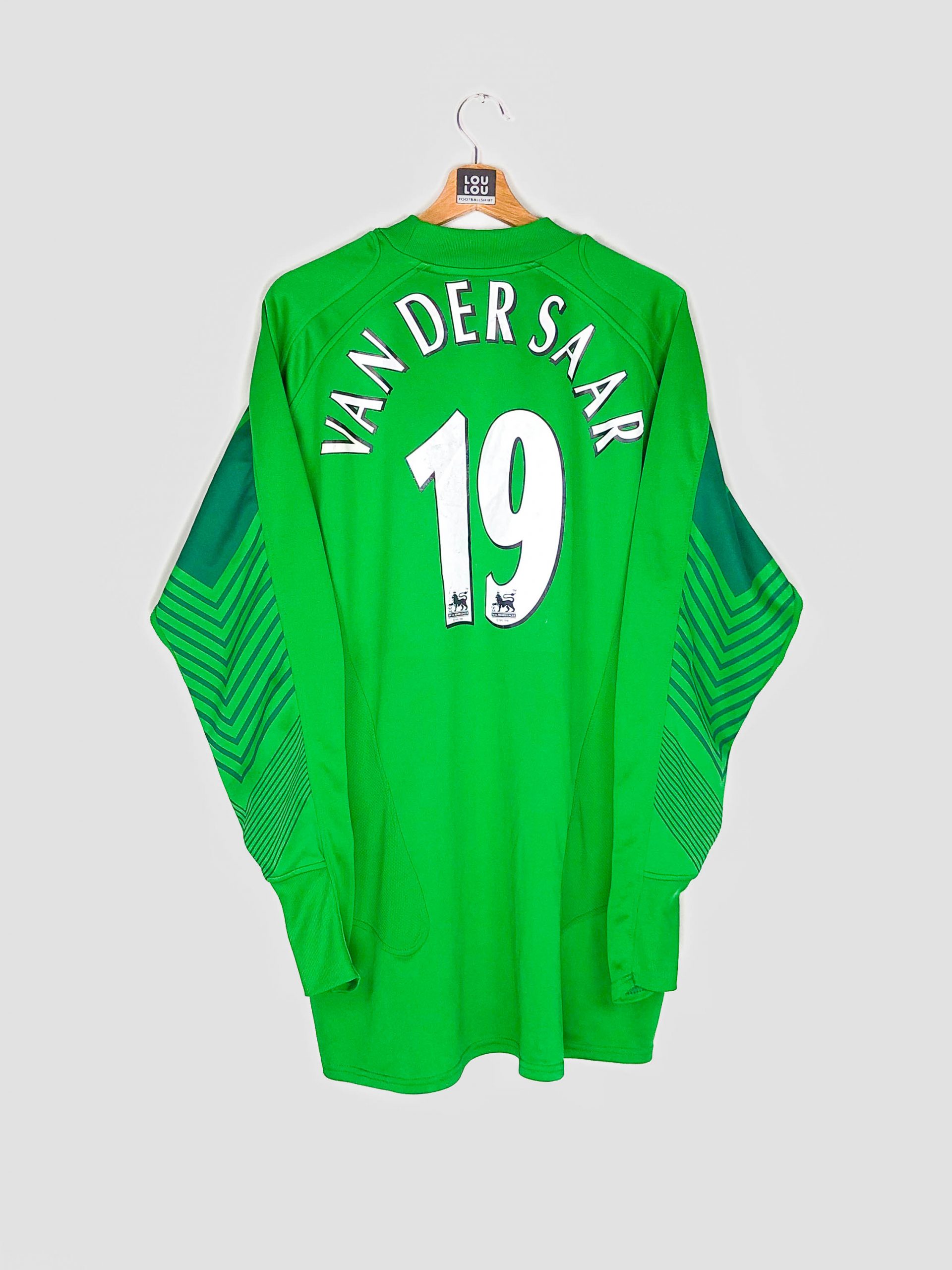 Louloufotballshirt vous présente ce maillot assez rare du gardien néerlandais de Manchester United saison 2005-2006, Edwin Van Der Sar. Cette saison 2005-2006 est spéciale pour Manchester United. Tout d’abord parce son Capitaine Emblématique irlandais Roy Keane quitte le club pour terminer sa carrière chez les Ecossais du Celtic Glasgow mais également car le club devient le premier à marquer 1000 buts en championnat. But qui sera par ailleurs inscrit par Cristiano Ronaldo lors d’une défaite 4-1 contre Middlesbrough au Riverside. Un autre fait marquant caractérise cette saison, la mort de la légende George Best à 59 ans.