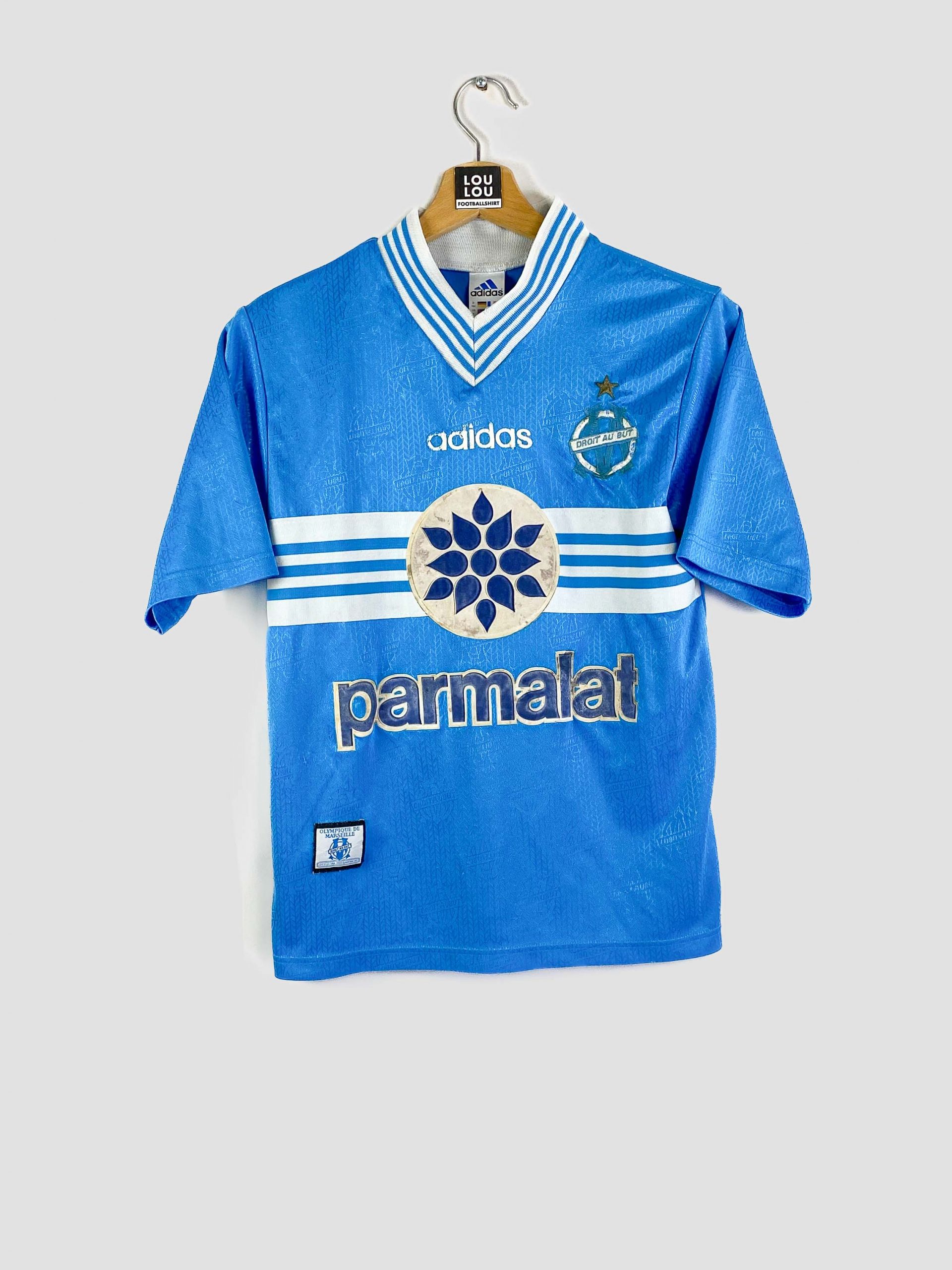 Nous vous présentons ce Maillot OM 1996-1997 extérieur, l’un des plus beaux et plus cultes maillots olympiens avec son magnifique sponsor Parmalat en feutrine . Sponsorisé par l’équipementier Adidas, ce maillot vous apporte la chaleur du soleil Olympien et la reconnaissance des Ultras marseillais.