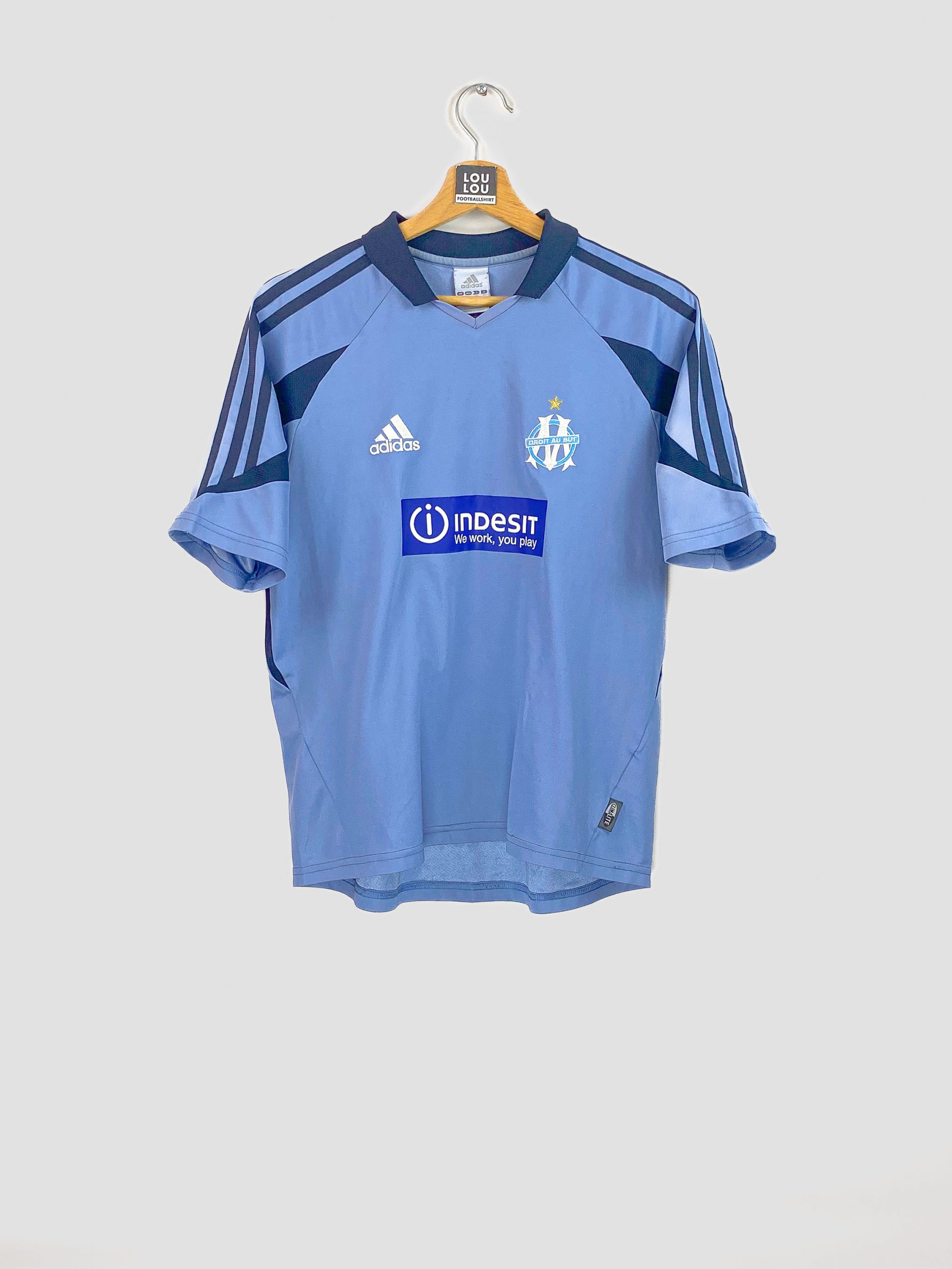 Louloufootballshirt vous présente ce maillot de l’Olympique de Marseille saison 2003-2004. La seule et unique saison ou l’ivoirien Didier Drogba portera le maillot Olympien. C’est cette saison là que l’attaquant arrive en provenance de Guingamp et forge sa légende en inscrivant 32 buts toutes compétition confondues. C’est également lors de cette année que l’Olympique de Marseille réalisera son record d’affluence contre le club anglais de Newcastle en demi finale de la coupe UEFA ( plus de 58000. spectateurs) Didier Drogba marquera par ailleurs un but d’antologie en cassant les reins du défenseur anglais. Ce geste si spécial sera nommé populairement par la suite « une Drogba ».