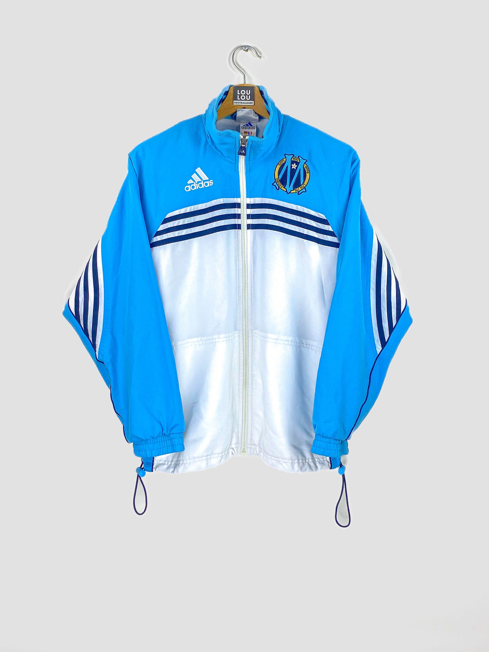 Nous vous présentons cette veste de survêtement centenaire de l’om saison 1998-1999 en taille 14 ans. Cette veste magnifique est emblématique de l’OM et son histoire.