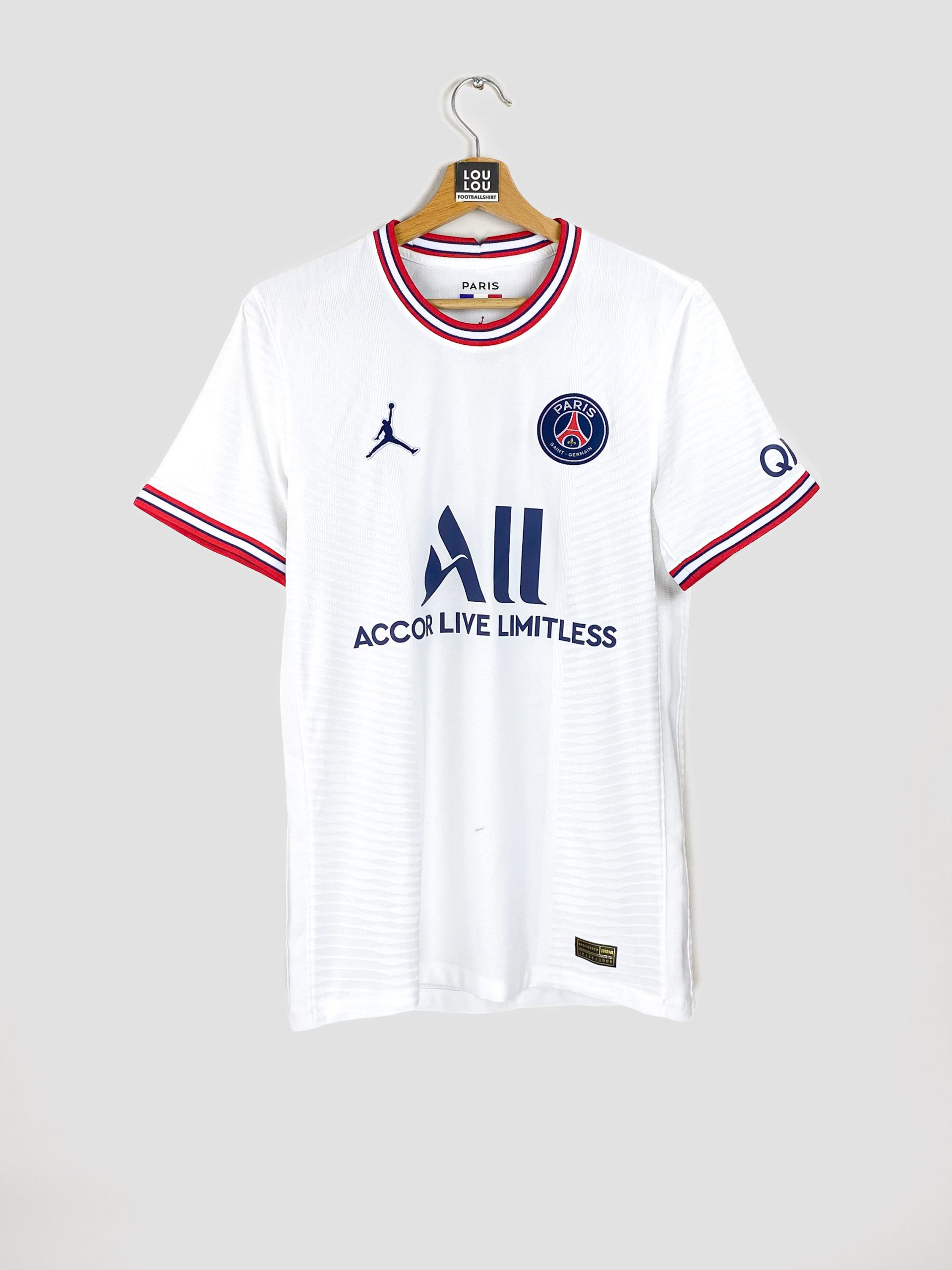 Louloufootballshirt vous présente ce maillot magnifique du PSG saison 2021-2022. Il s’agit du maillot Fourth en version joueur, gamme vaporknite de Nike (Player Issue).