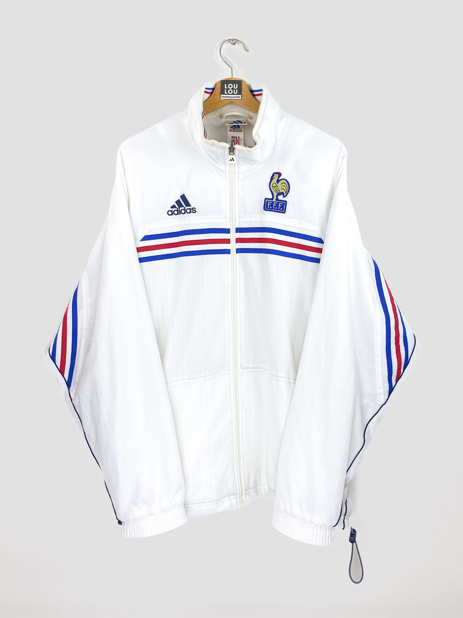 Cette veste de survêtement est devenu l’une des plus culte puisqu’elle représente la première victoire en coupe du monde pour l’équipe de France. De plus elle est également très rare à trouver de nos jours. Une pépite donc, à posséder pour tous les fans de l’équipe de France.